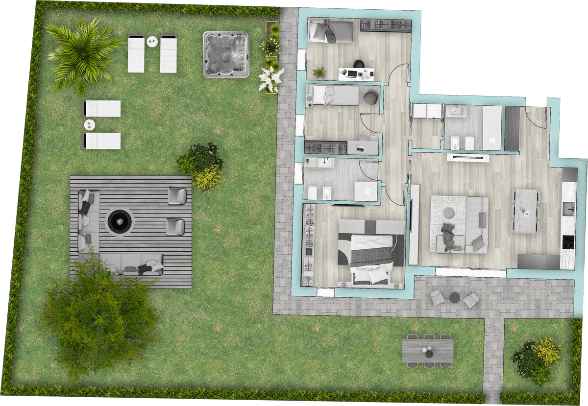Locali: 3 Camere da letto 2 Bagno Zona giorno di c.ca 37 mq Ampio giardino